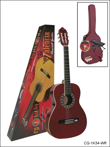 VALENCIA CLASSIC GUITAR PACK / FULL SCALE /WINE RED