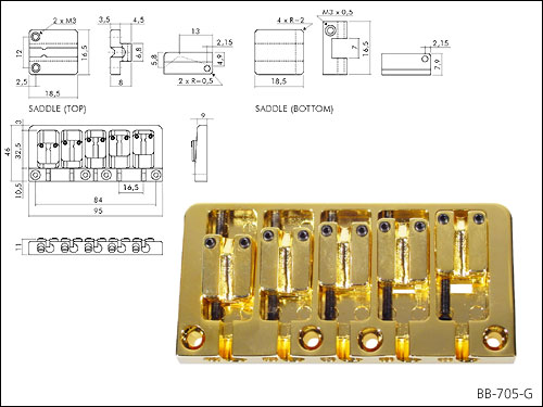 BRIDGE-TAILPIECE /"WMI" MODEL /GOLD /6-STRING